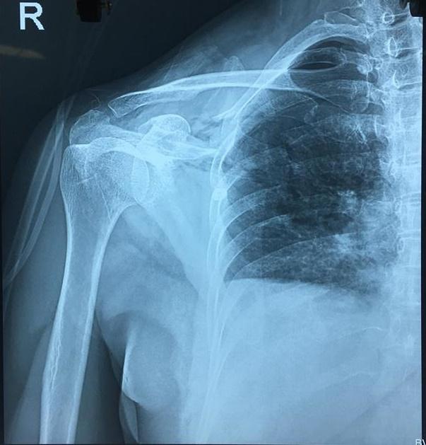 Cụ thể, bệnh nhân có vết thương thấu ngực, do dao đâm từ bả vai xuyên từ sau ra trước gây tổn thương rách da 10 cm, gãy xương vai, đứt lìa ba xương sườn 4, 5, 6 gây tràn máu, tràn khí màng phổi.