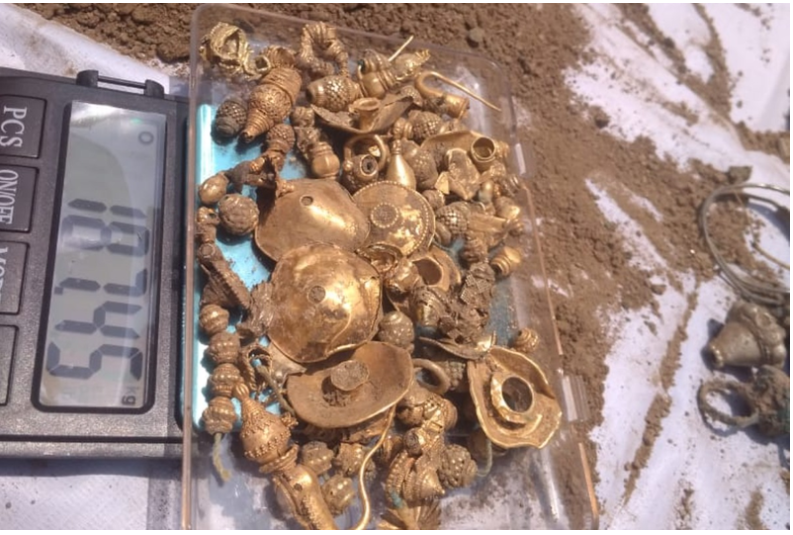 Nhóm công nhân lập tức báo với chủ nhân của mảnh đất. Ông Narasimha cũng báo với cơ quan chức năng của địa phương về phát hiện này. Một số nhân viên của chính quyền địa phương đã tới hiện trường. Sau khi kiểm đến, họ xác nhận trong hũ chứa có 22 hoa tai và đồ vật bằng vàng, 5 dây chuyền và đồ dùng bằng bạc, 26 thỏi bạc.