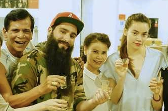 Ngoài việc được chiêu đãi nhiều món ăn Việt Nam, đạo diễn người Mỹ còn tỏ ra thích thú với rượu thuốc. Anh không quên lưu lại hình ảnh của "đặc sản" này trong khi Hồ Ngọc Hà bật cười thích thú.