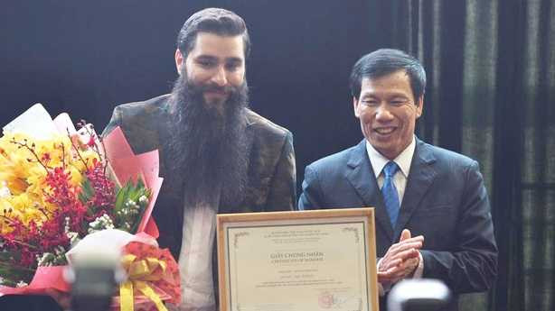 Bộ trưởng Bộ Văn hóa, Thể thao và Du lịch trao quyết định bổ nhiệm vị trí Đại sứ Du lịch cho đạo diễn Jordan Vogt-Roberts. (Ảnh: Thời Đại)