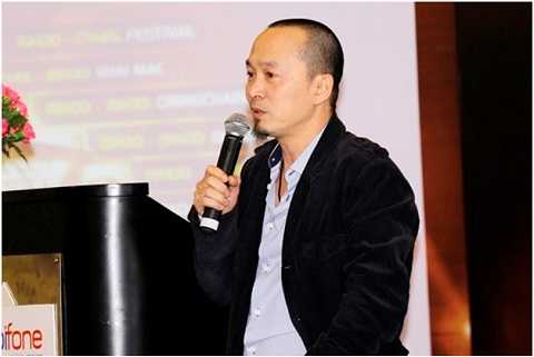 | Đạo diễn Quốc Trung trong chương trình Họp báo MobiFone RockStorm 2013 tại TP HCM 20/12 |