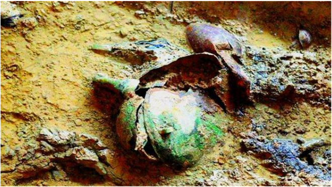 Sau đó, ông đào thêm được 3 cái chum tương tự. Lão Lưu thấy bên ngoài chum bị gỉ, lớp vỏ đã chuyển màu xanh và biết chúng được làm từ đồng. Biết đồng bán được giá nên ông đem về nhà. Để mọi người không phát hiện, ông tìm chỗ chôn 4 cái chum.