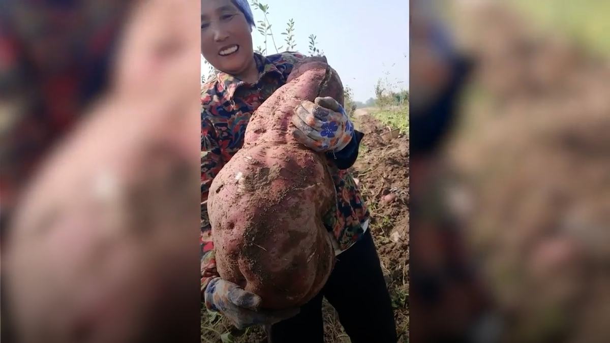 Nữ nông dân "choáng váng" khi đào được một củ khoai lang khổng lồ nặng gần 14 kg trên cánh đồng ở tỉnh Sơn Tây, Trung Quốc.