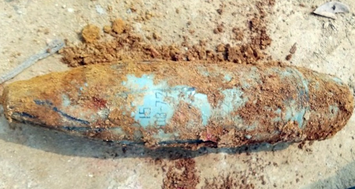 Trong quá trình đào móng nhà, ông Hồ Văn Quang thấy quả đạn pháo nằm lẫn trong đất nền nhà. Quả đạn pháo dài khoảng 0,6 m, vỏ ngoài màu xanh với dãy số ký hiệu bên trên.