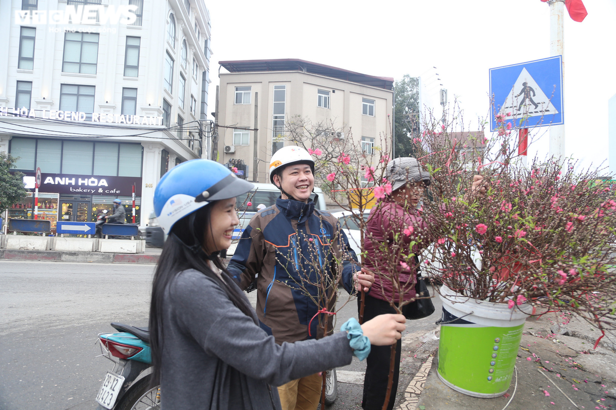 Nhiều khách mua chia sẻ, nhìn thấy đào là thấy mùa xuân, trong nhà có cành đào cũng thấy không khí ấm áp, rộn ràng hơn.