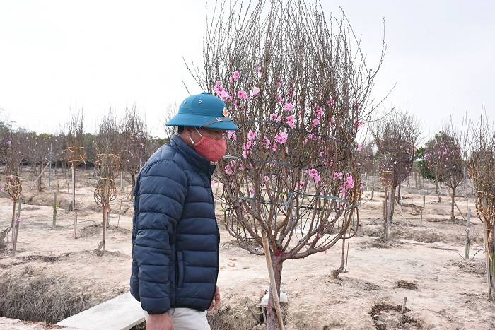 Năm nay cũng theo lệ cũ, chúng tôi đánh những gốc đào to, đẹp trong đó có những gốc gần 10 triệu đồng về để chờ mang đi bán. Nhưng vừa đánh về hôm trước, hôm sau có lệnh phong tỏa TP Chí Linh do dịch COVID-19 bùng phát. Những gốc đào để đó thì sợ hỏng, chúng tôi lại mất thêm tiền mua chậu nhưng đến nay 1 tuần trôi qua, Tết cũng đến sát mà không cây nào có thể mang xuống chợ bán. Anh em chúng tôi rất sốt ruột vì tiền đầu tư vào đó không ít”, ông Cường nói.