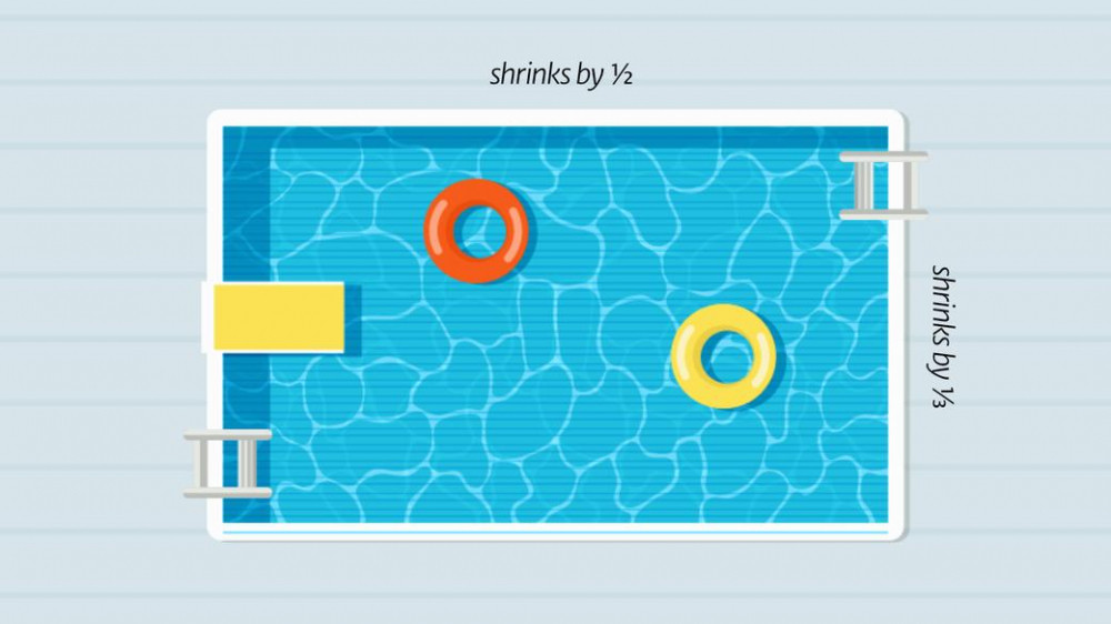 => 6 lần diện tích hồ bơi bị thu nhỏ = chiều dài x chiều rộng