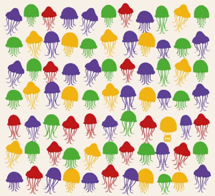 Khinh khí cầu nằm ở góc phải, hàng thứ ba từ dưới lên của đàn sứa.