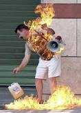 Trong lúc cự cãi với lực lượng làm nhiệm vụ, Thảo bất ngờ đạp ngã xe của mình làm xăng văng ra đường và dính vào người trung úy Lê Văn Trường Em.