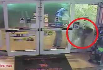 2 gã đàn ông đeo mặt nạ toan cướp một trạm xăng ở Florida, Mỹ nhưng cuối cùng phải bỏ cuộc trong cay đắng vì cánh cửa làm bằng kính cường lực dường như "bất khả chiến bại".