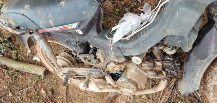 Chiếc xe máy của tổ bảo vệ rừng bị đập phá, hư hỏng.