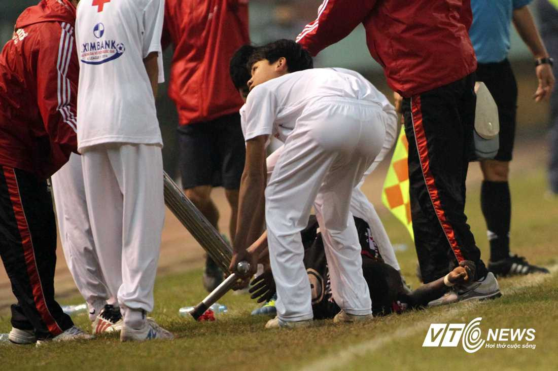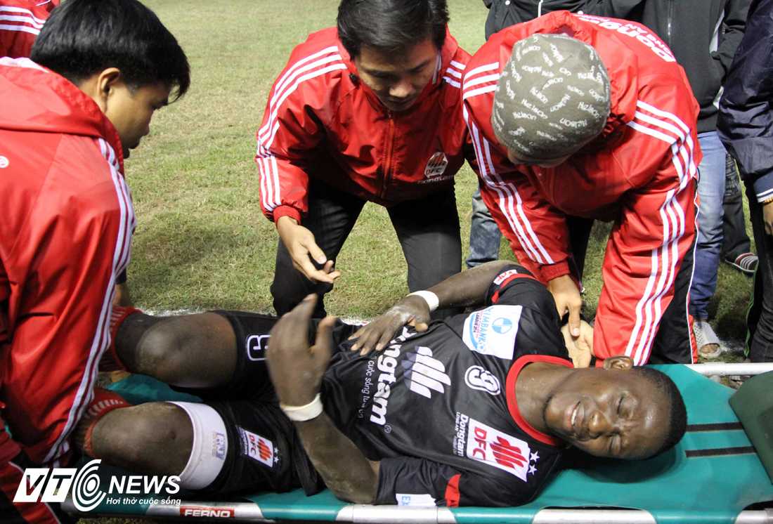Danny David đau đớn rời sân đi cấp cứu vì gãy xương sườn (Ảnh: VSI)