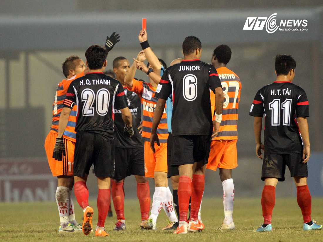 Đinh Văn Ta nhận thẻ đỏ trực tiếp của trọng tài chính Hoàng Anh Tuấn (Ảnh: VSI)