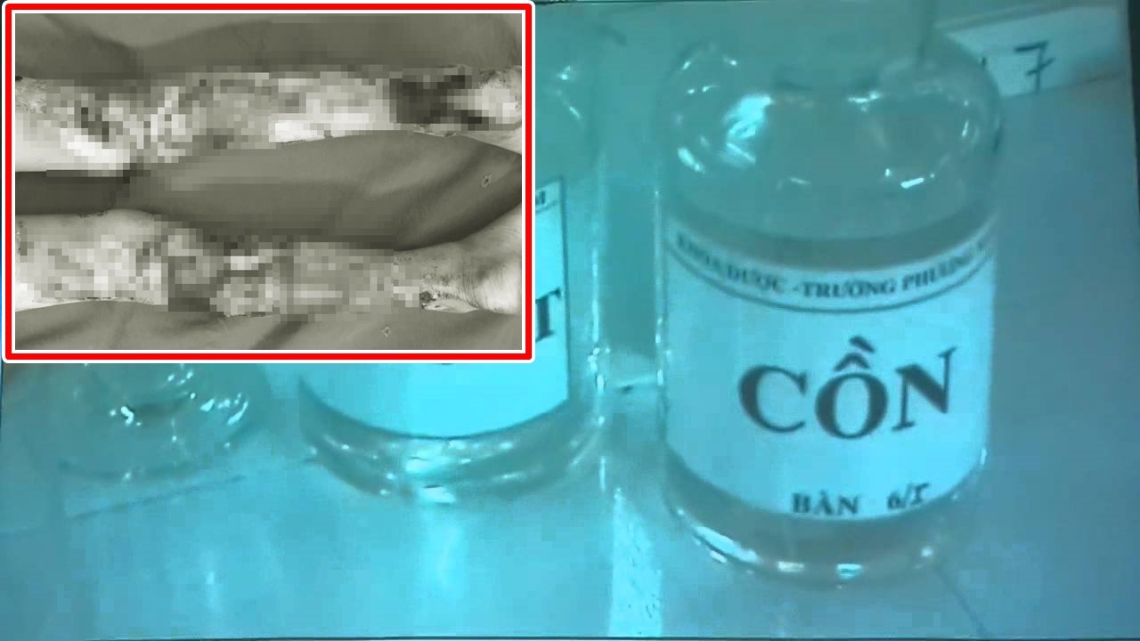 Bé bị tai nạn khi chơi tai nhà, do sơ ý đã vô tình làm cháy can cồn nên bé bị bỏng nặng cả hai chân. Nhưng thay vì đưa bé tới bệnh viện thì gia đình lại để bé ở nhà điều trị bằng thuốc nam.