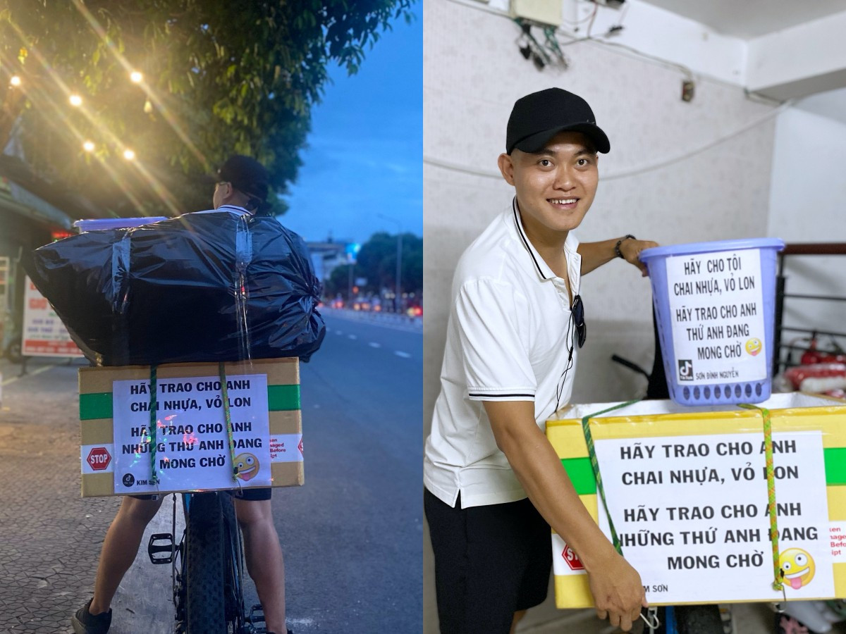 Nguyễn Đình Sơn - chàng trai gây sốt mạng xã hội đạp lượm ve chai, tặng tiền cho người nghèo.