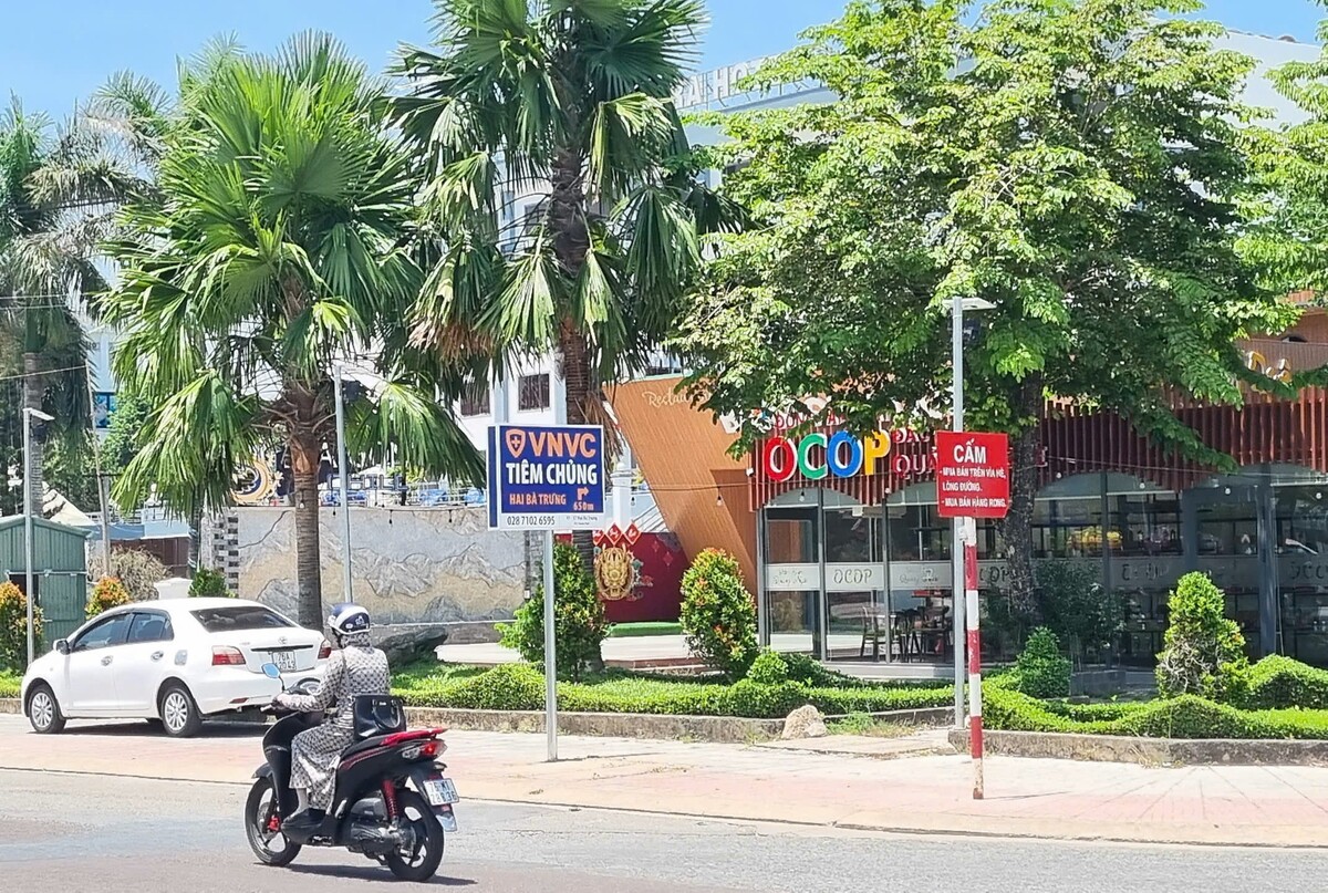 Trước đó, lúc 16h25 ngày 23/8, UBND phường Trương Quang Trọng (TP Quảng Ngãi), cơ qua chức năng phát hiện VNVC có hành vi sử dụng trái phép lòng đường đô thị, hè phố để đặt, treo biển hiệu, biển quảng cáo gây cản trở giao thông trên vỉa hè đường Trần Văn Trà (phường Trương Quang Trọng) với quy mô: 1 trụ sắt cao 3m, biển hiệu có kích thước 0,9m x 1,2m.