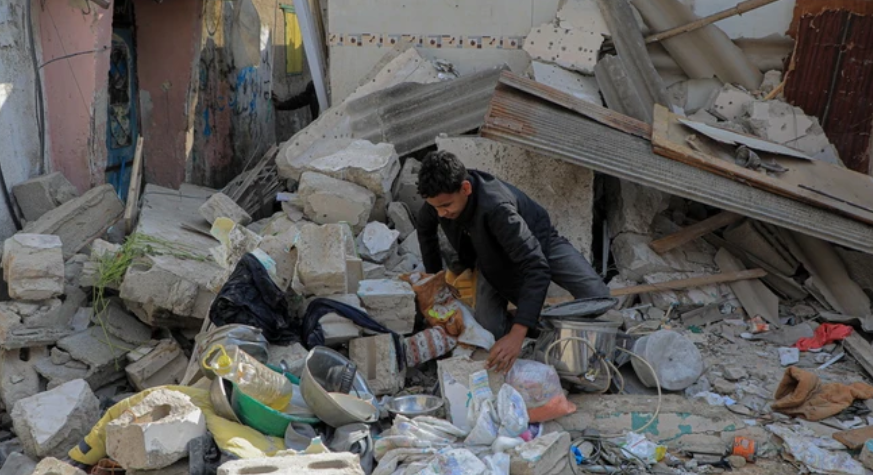 Ngôi nhà bị phá hủy trong xung đột Israel-Hamas ở thành phố Rafah, Dải Gaza, ngày 1/5/2024. (Ảnh: THX/TTXVN)