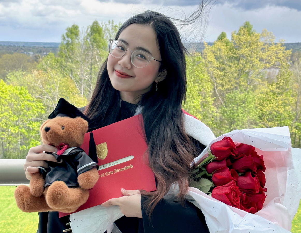 Nguyễn Cẩm Kiều Khanh, 23 tuổi, tốt nghiệp thủ khoa ngành ngành Hóa dược, trường Đại học New Brunswick, Canada với điểm GPA tuyệt đối 4.3/4.3. Với thành tích xuất sắc, Khanh tiếp tục nhận được học bổng toàn phần hệ Thạc sĩ, ngành Khoa học Dược, Đại học British Columbia.