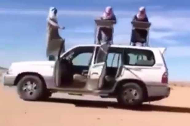 (VTC News) - Ở nơi xăng rẻ hơn nước lọc như Trung Đông, người ta nghĩ ra đủ kiểu để giải trí với xe ô tô, chẳng hạn như dắt xe như dắt lạc đà đi dạo hoặc nằm khểnh cho xe kéo đi đâu thì đi giữa sa mạc.