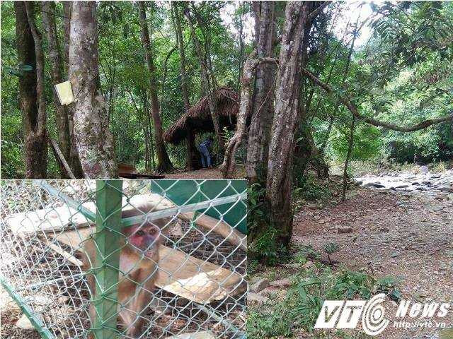Một trong bốn con khỉ bị nuôi nhốt trái phép trong khu du lịch của ông Sinh.