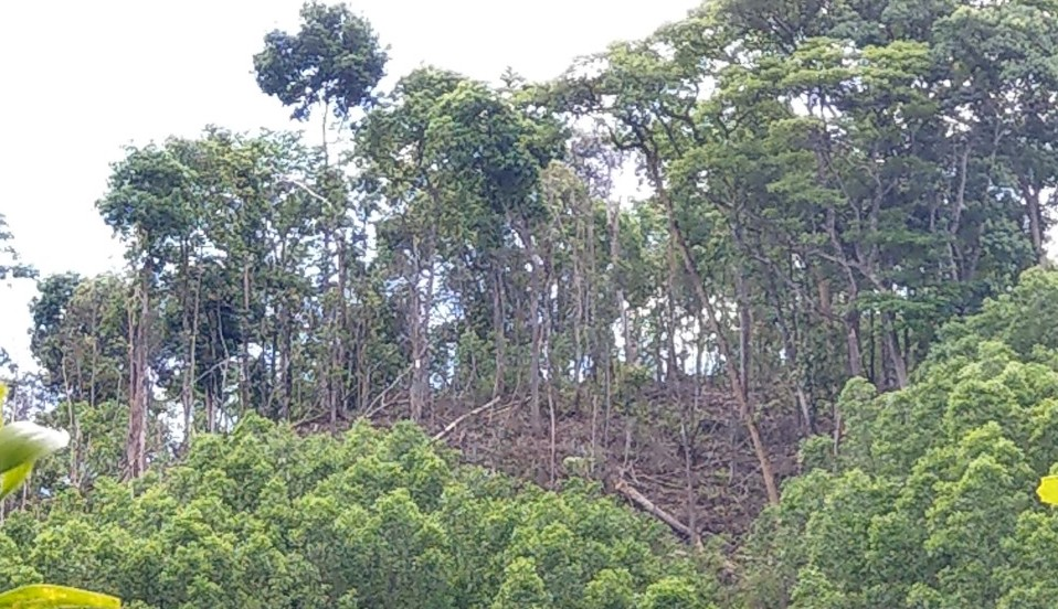 Tại vị trí vi phạm, hầu hết cây rừng tự nhiên vẫn còn, rải rác 1 số cây bị chặt hạ, đẽo vỏ, tổng diện tích bị luỗng phát dây leo, cây bụi và trồng keo là 0,45ha. Qua kiểm tra lực lượng chức năng nhận định, khu vực này đang diễn ra tình trạng phá rừng tự nhiên để chiếm đất.