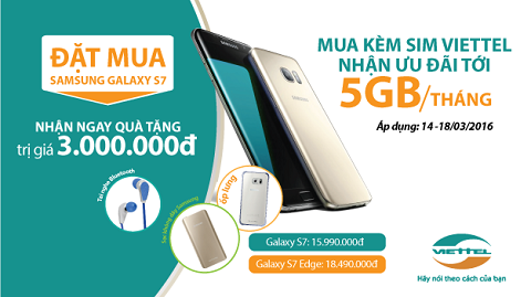 Khách hàng đặt trước 2 siêu phẩm nói trên tại chuỗi cửa hàng Viettel sẽ được nhận bộ quà tặng trị giá 3.000.000 đồng, gồm: sạc không dây Samsung, Ốp lưng S7, Tai nghe bluetooh; Mua sim Viettel 10 số (giá chỉ 50.000đ) và được tham gia chương trình khuyến mại “Dùng data miễn phí thoại”: Cước 100.000đ/tháng được 5GB data và tặng thêm 100.000đ cước gọi nội mạng – Áp dụng trong 6 tháng.
