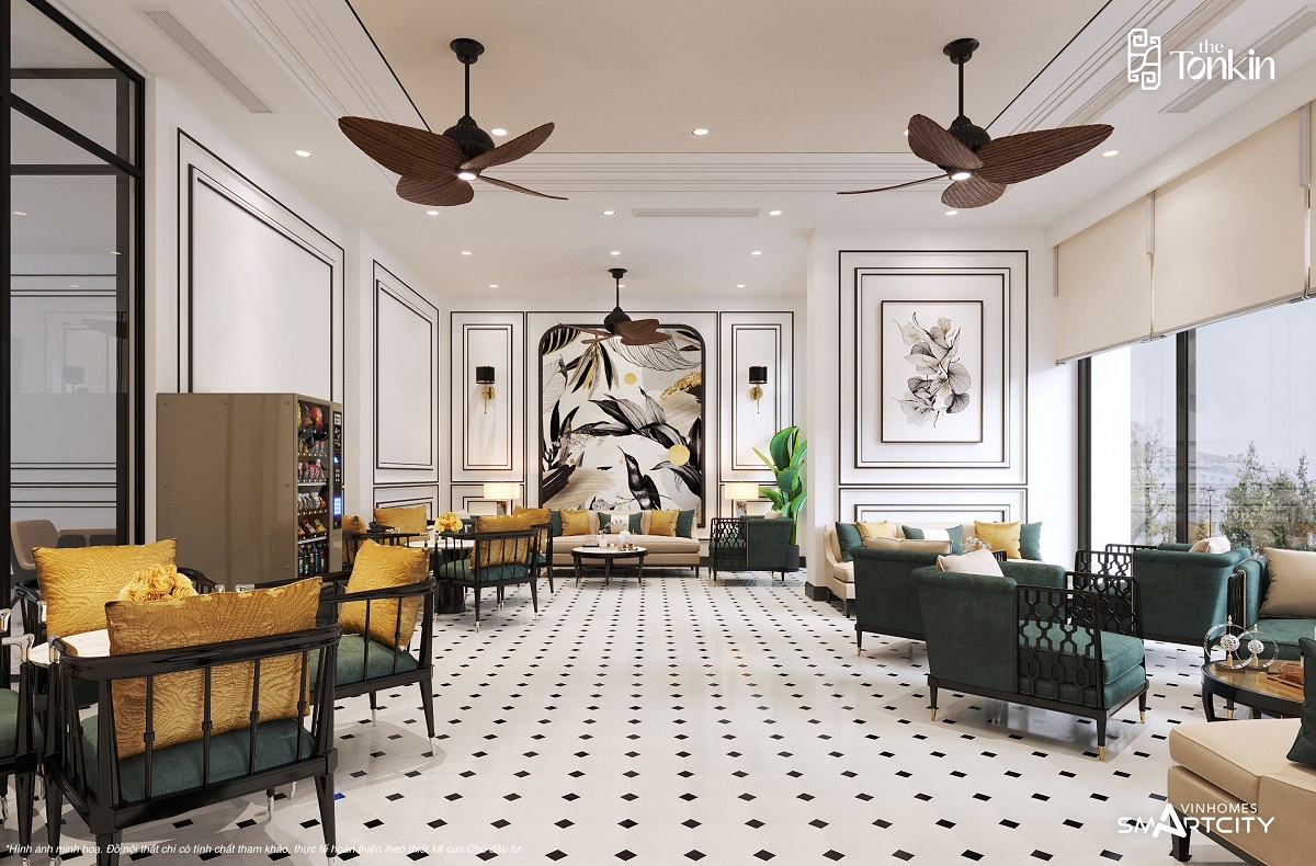 Dấu ấn nghệ thuật Indochine của The Tonkin nổi bật ngay từ lối dẫn vào và thể hiện rõ nét qua từng hạng mục, tiện ích, không gian tiểu cảnh cũng như việc lựa chọn vật liệu xây dựng và đường nét thiết kế. Đó là sảnh lễ tân được chăm chút kĩ lưỡng với nền gạch bông cách điệu tinh tế hơi hướng Á đông, kết hợp đèn chùm cổ điển và không gian lãng mạn mang dấu ấn kiến trúc Pháp, mang đến niềm kiêu hãnh cho mỗi gia chủ mỗi khi đón khách đến thăm.