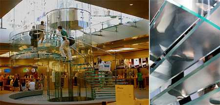 Việc dùng kính trong chuỗi cửa hàng bán lẻ bắt đầu được chú ý khi Apple Store ở Fifth Avenue (New York) ra đời năm 2006. Ban đầu, gian hàng nằm ở vị trí không thực sự "thiên thời, địa lợi, nhân hòa".