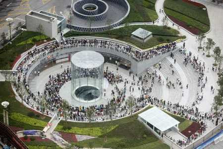 | Apple Store ở Thượng Hải nằm trên lối đi hình tròn. Ảnh: USAToday. |