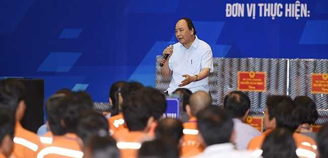 | Thủ tướng Nguyễn Xuân Phúc đối thoại với 3.000 công nhân tại Đồng Nai. Ảnh: VPG. |