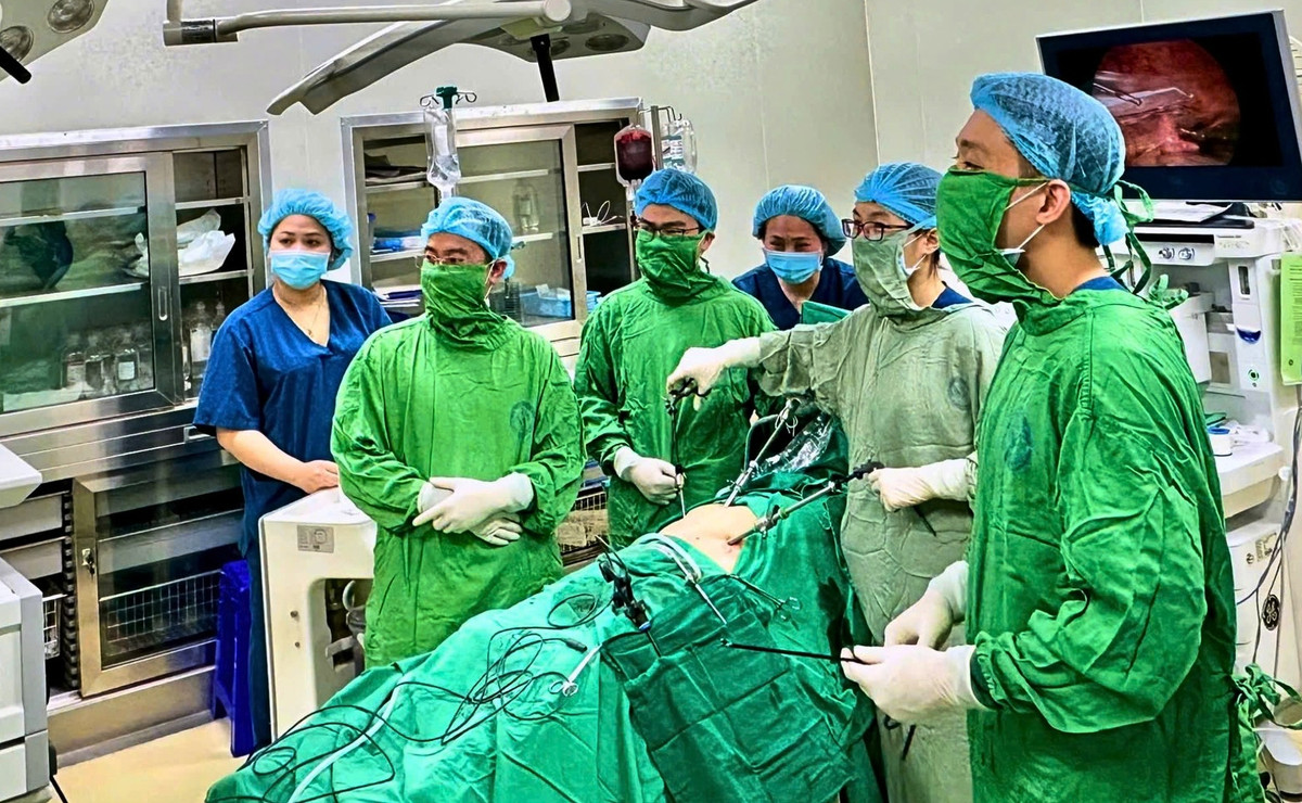 Ê-kíp phẫu thuật nội soi cấp cứu bệnh nhân. (Ảnh: Na Lê)