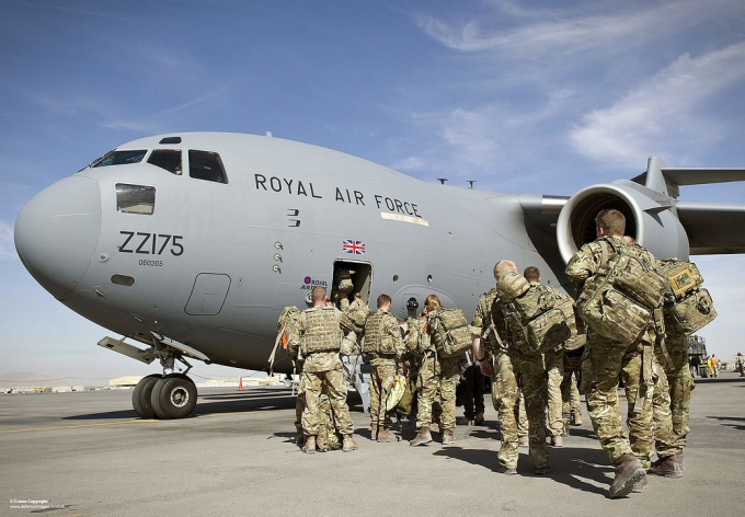 Chiếc C-17 cuối cùng của Mỹ cất cánh từ Sân bay Quốc tế Hamid Karzai vào 15h29 chiều 30/8 giờ Washington. (Ảnh: Getty Images)