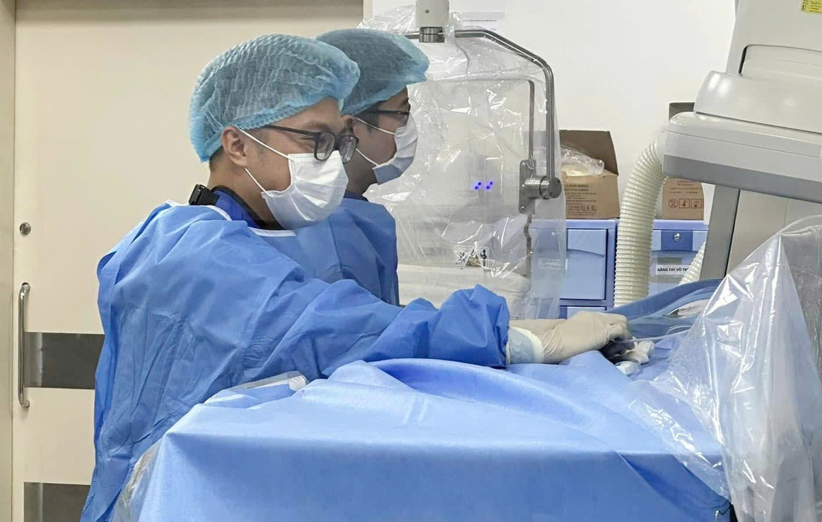 Các bác sĩ đang can thiệp cho một ca bệnh phình mạch máu não. (Ảnh: BSCC)