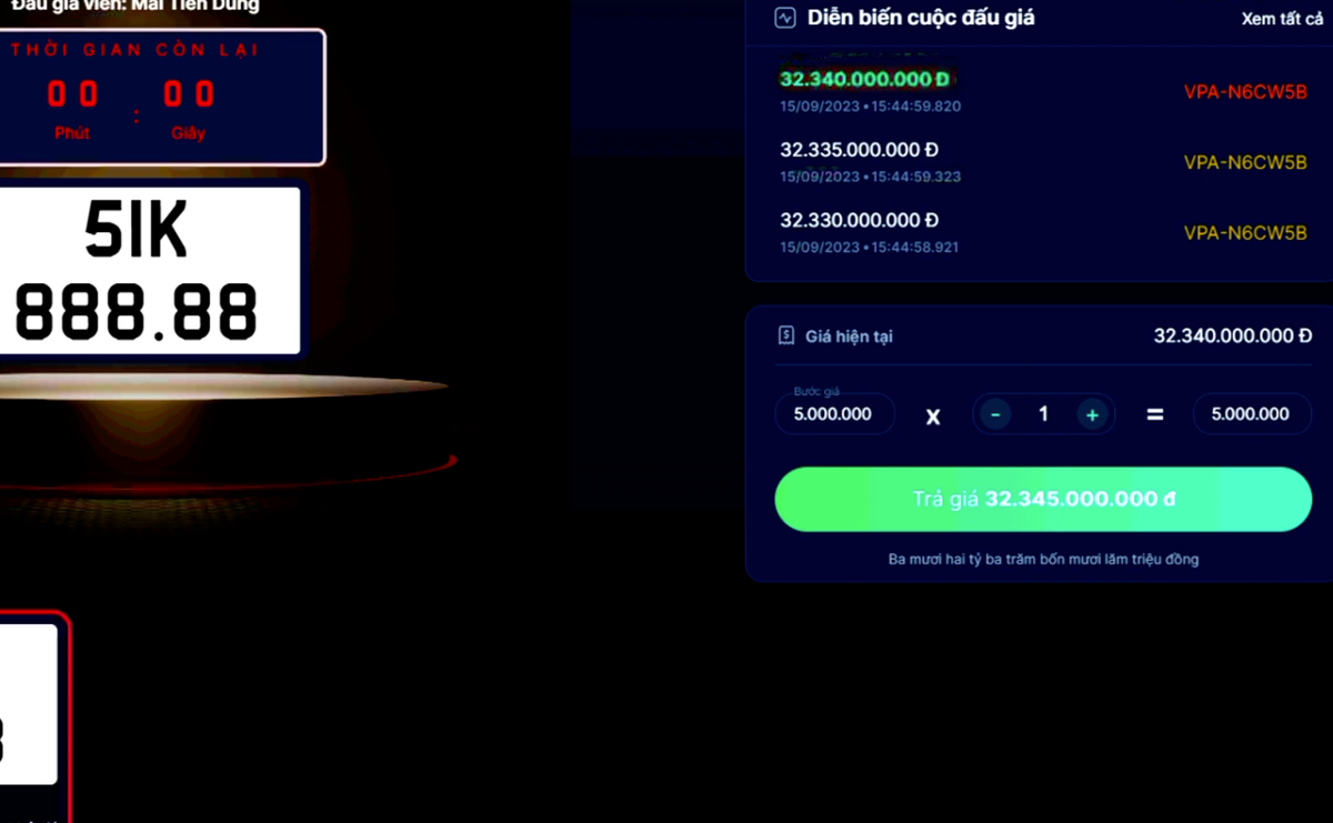 Biển số siêu đẹp 51K-888.88 trúng đấu giá hơn 32 tỷ đồng.