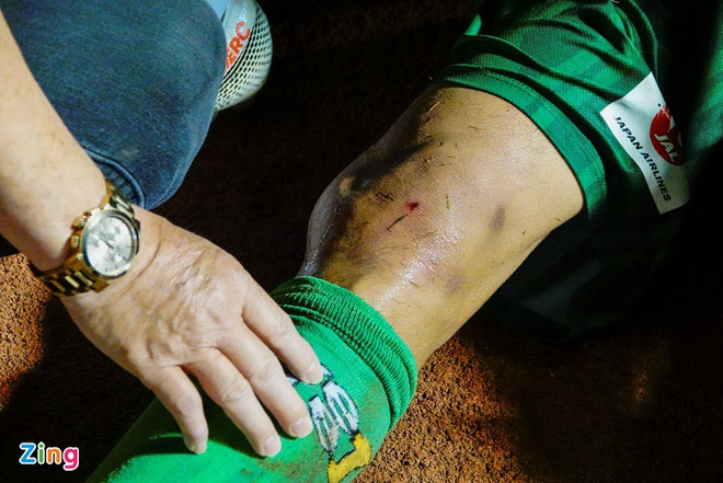 Đầu gối của Công Thành sưng to, hiện rõ vết lõm và những vết xước sau cú đạp của Thế Hưng. Sau pha va chạm, anh chạy trên sân bằng những bước chân tập tễnh. Lúc này, CLB Sài Gòn đã không còn quyền thay người.