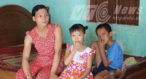 | Chị Nguyệt cùng 2 đứa con tật nguyền. |