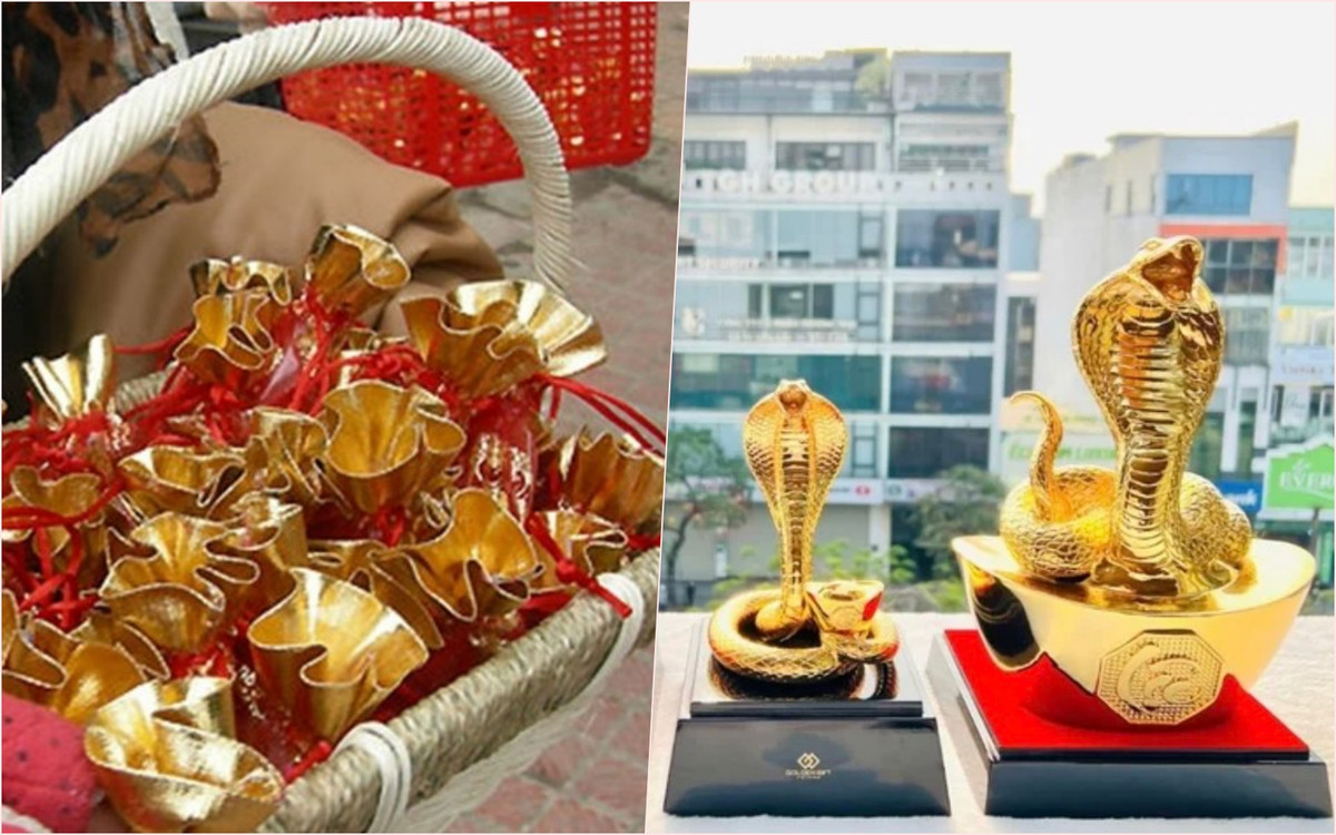 Tượng rắn dát vàng được nhiều người ưa chuộng trong dịp Tết Ất Tỵ.