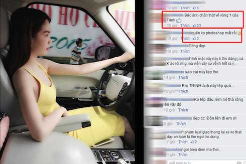 Xẹp lép, bức ảnh chân thật về vòng một của Ngọc Trinh, quên không photoshop mất rồi, ...là những lời bình luận về vòng một của Ngọc Trinh. Có bạn còn đặc biệt quan sát kỹ và nhận xét: 'Trinh mặc váy này không tôn dáng gì cả, không áo lót nhưng viền váy cứ vểnh ra ấy'. Hay có bạn thì cho rằng người đẹp đã vi phạm luật giao thông khi lái xe không thắt dây an toàn, tư thế ngồi không đúng: 'Vi phạm luật giao thông, lái xe không thắt dây an toàn, tư thế ngồi không đúng'.