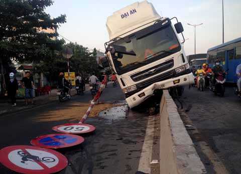 Khoảng 4h sáng 19/1, trên quốc lộ 1 (đoạn phường Tân Phú, quận 9, TP.HCM) xảy ra một vụ tai nạn khiến nhiều người thót tim.