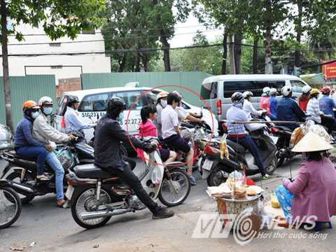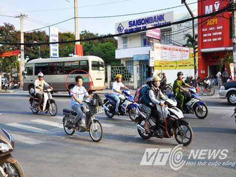 | Ghi nhận cả ngày, chúng tôi chỉ thấy mỗi ông Trần Lạt nghiêm chỉnh chấp hành luật giao thông khi đội nón bảo hiểm |