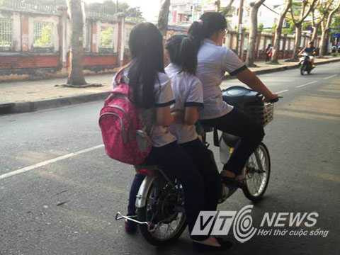 | Cứ giờ tan trường là các em học sinh lại phóng xe đạp điện vù vù như thế này |
