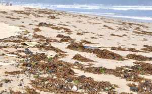 Theo phản ánh của người dân, tình trạng dầu vón cục cùng rong biển tấp vào bờ biển ngày 3/1 nhiều hơn và có kích thước lớn hơn ngày hôm qua 2/1