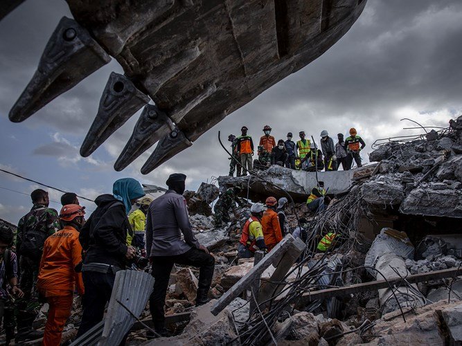 Mặt đất vẫn rung chuyển khi ông Martinus Hamaele bước vào đống đổ nát vốn là một phần của khách sạn Mercure, tòa nhà 5 tầng trên bờ biển thành phố Palu.