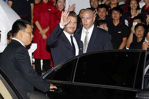 Sau khi đặt chân đến Hàn Quốc, Trung Quốc và Hong Kong, Beckham đã đến Việt Nam vào chiều qua 10/11. Đây là lần đầu tiên, cựu danh thủ người Anh tới Hà Nội. Anh chỉ ký tặng một số rất ít người hâm mộ tại cửa ra VIP 1 sân bay, rồi lên xe về trung tâm Hà Nội.