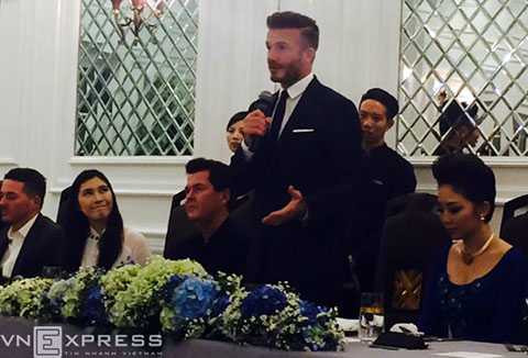 | Beckham phát biểu trong bữa tiệc trên phố Bà Triệu |