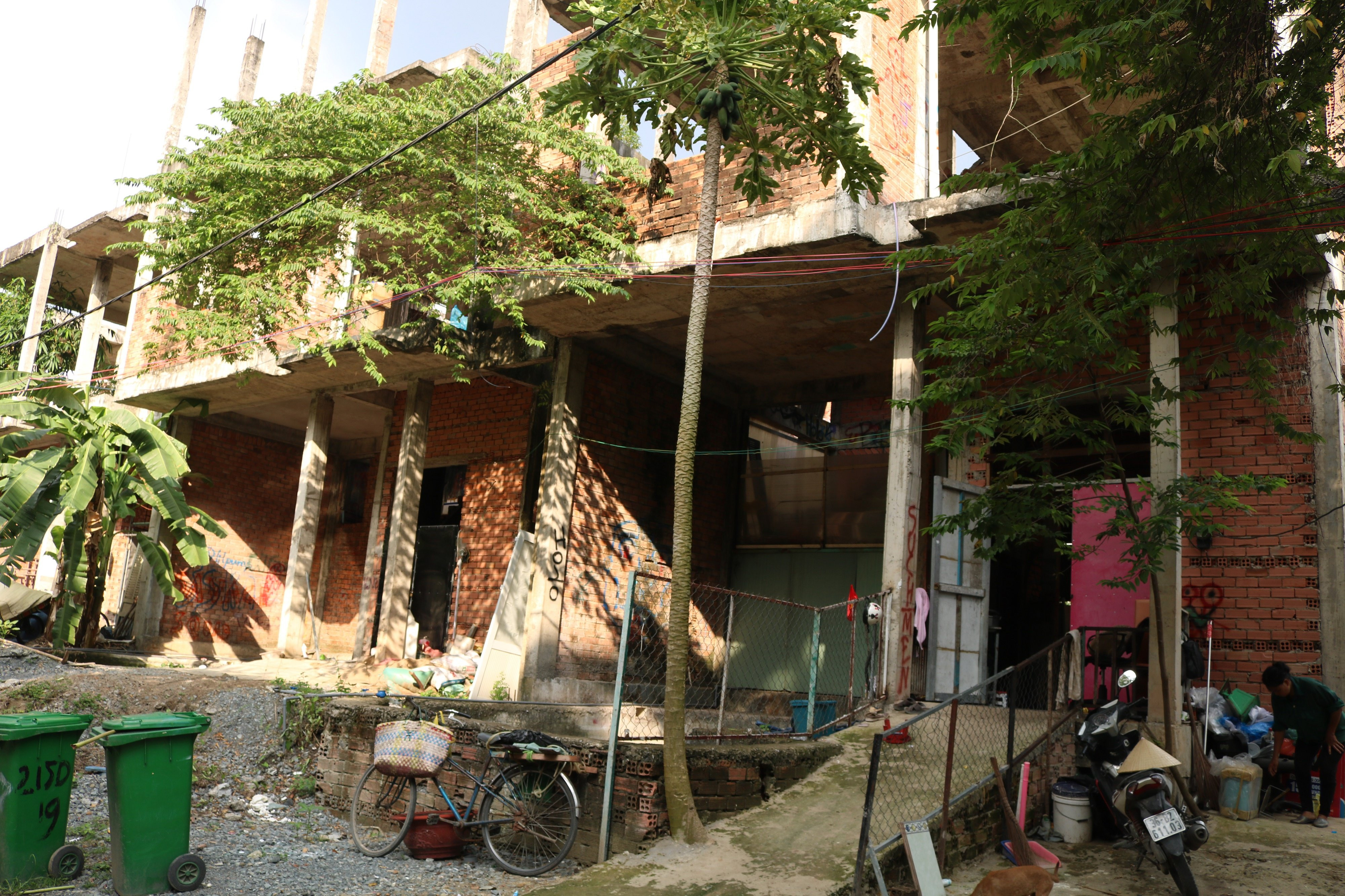 Dãy bỏ hoang gồm 11 căn biệt thự đã được xây dựng xong phần thô gồm 1 trệt, 2 lầu. Hiện nay, nơi đây là chỗ ở tạm thời của khoảng 26 nhân khẩu vốn là dân lao động có thu nhập thấp.