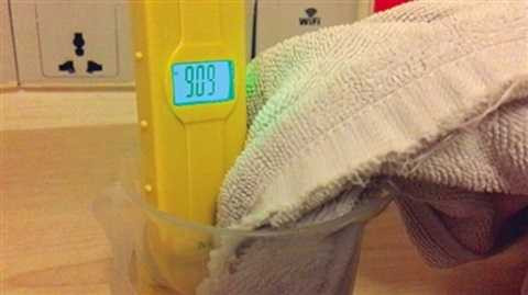 Phóng viên đã lấy một chiếc khăn từ khách sạn trong quá trình điều tra để kiểm nghiệm, kết quả kiểm tra cho thấy, nồng độ pH cao hơn 10, ngưỡng an toàn cho phép chỉ ở mức 6,5 -7.