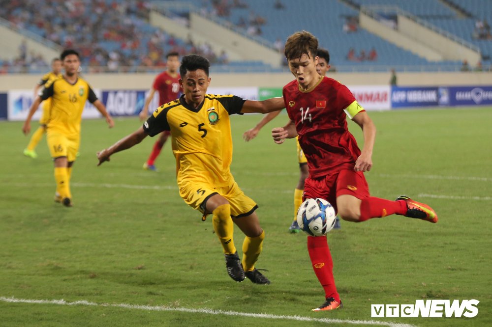 Đó là tiền vệ Nguyễn Hoàng Đức – người ra sân với tấm băng đội trưởng trong trận đấu gặp U23 Brunei tối qua. Hoàng Đức là đội phó nhưng do Quang Hải và Thanh Sơn không có tên trong đội hình xuất phát nên tiền vệ của Viettel trở thành thủ quân.
