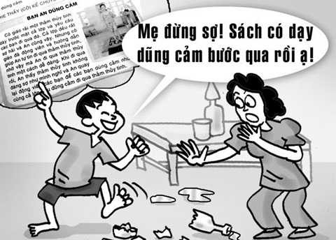 Lòng dũng cảm theo quyển sách này nghĩa là “cứ làm đi, mọi chuyện đã có người khác lo”? Đó là dạy cho trẻ học cách dựa dẫm chứ không phải giáo dục cho chúng về lòng dũng cảm. "Dũng cảm" hay là "Liều mạng"? Hai khái niệm hoàn toàn khác nhau. Dũng cảm là dám đối mặt với thử thách, dám chịu trách nhiệm về hành động của chính mình, dám thừa nhận sai lầm của bản thân. Chứ không phải là biết nó nguy hiểm mà vẫn lao đầu vào. Chưa hết, điều đáng nực cười hơn là vị tiến sĩ chủ biên giáo trình này cho rằng “Nếu sợ thảm thủy tinh gây nguy hiểm thì việc học bơi cũng có thể khiến trẻ chết đuối vậy”. Chính ý kiến của ông một lần nữa khiến dư luận dậy sóng vì không ai nghĩ một người có kinh nghiệm và đầy đủ kiến thức lại có thể đưa ra một quan điểm đánh tráo khái niệm như vậy.