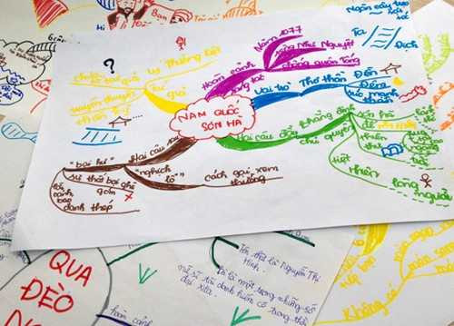 Giờ học văn của lớp 7A1, 7A2 và 7A3 của trường THCS VinSchool luôn diễn ra một cách vui vẻ và sôi nổi. Thay vì cắm cúi ghi chép kín trang giấy như cách học truyền thống, mỗi học sinh đều hào hứng...vẽ. Bài học được biểu thị sinh động dưới hình thức các “nhánh” thông tin, các kí hiệu, từ khóa, màu sắc, hình ảnh để ghi nhớ nội dung bài học, một cách khoa học và mạch lạc.